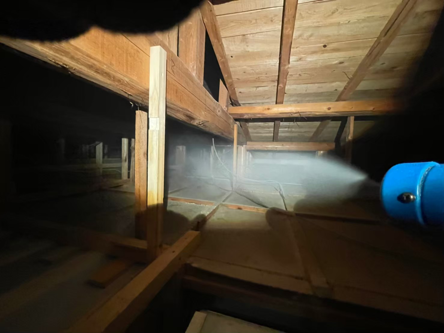 - 「天井裏でコトコト・ガサガサと音がする」「夜になると特に音が大きくなり、睡眠に支障が出ている」「家の中に黒いフンが落ちていることがあり不安」というご相談をいただきました。