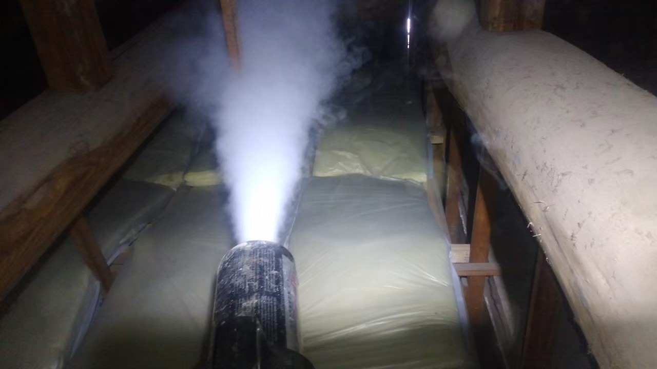 天井裏の糞尿清掃作業