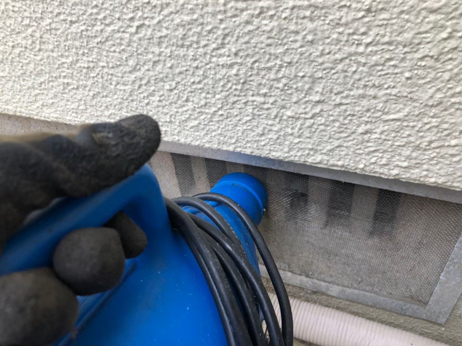 調査の結果、床下から2階天井まで広範囲にイタチが侵入し、深刻な被害状況でした。イタチは攻撃的な性格で、糞尿による悪臭も非常に強烈です。まず煙霧処理により徹底的に追い出しを行い、その後、外壁や屋根周りの複数箇所にある侵入口を高所作業を含めて金網で補強しながら完全に封鎖いたしました。