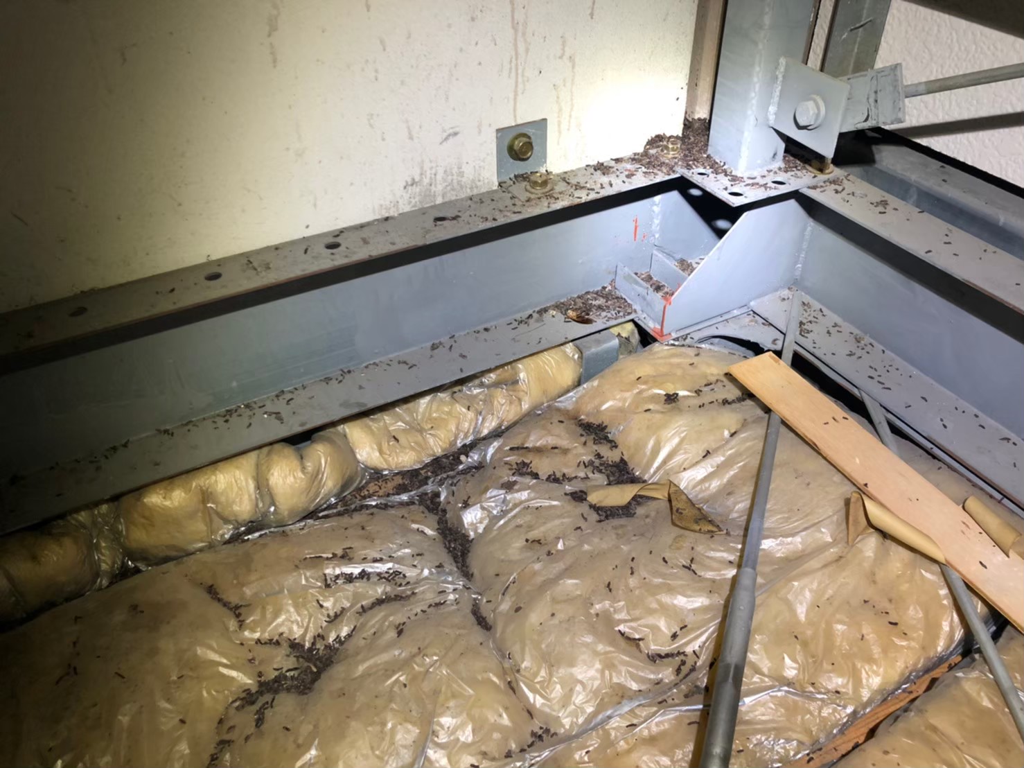 - 天井裏と床下から夜間に物音が続き、調査の結果、ネズミが広範囲に侵入していることが判明しました。