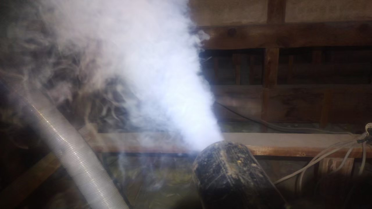 天井裏の糞尿清掃作業