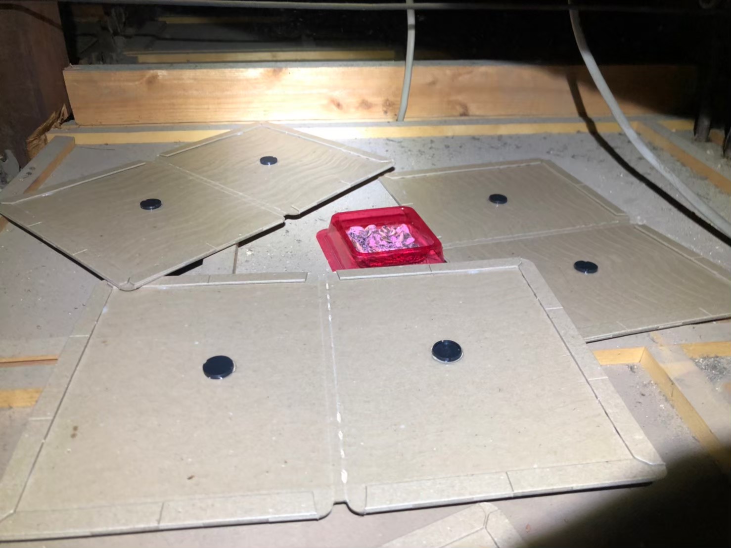 追い出し作業と同時並行で、外周から内部まで徹底した封鎖を行い、再侵入のリスクをなくすことを最優先に施工いたしました。また、糞尿による汚染箇所が複数あったため、殺菌消毒と併せてマーキング消臭を行い、においの再発防止にも力を入れて行いました。