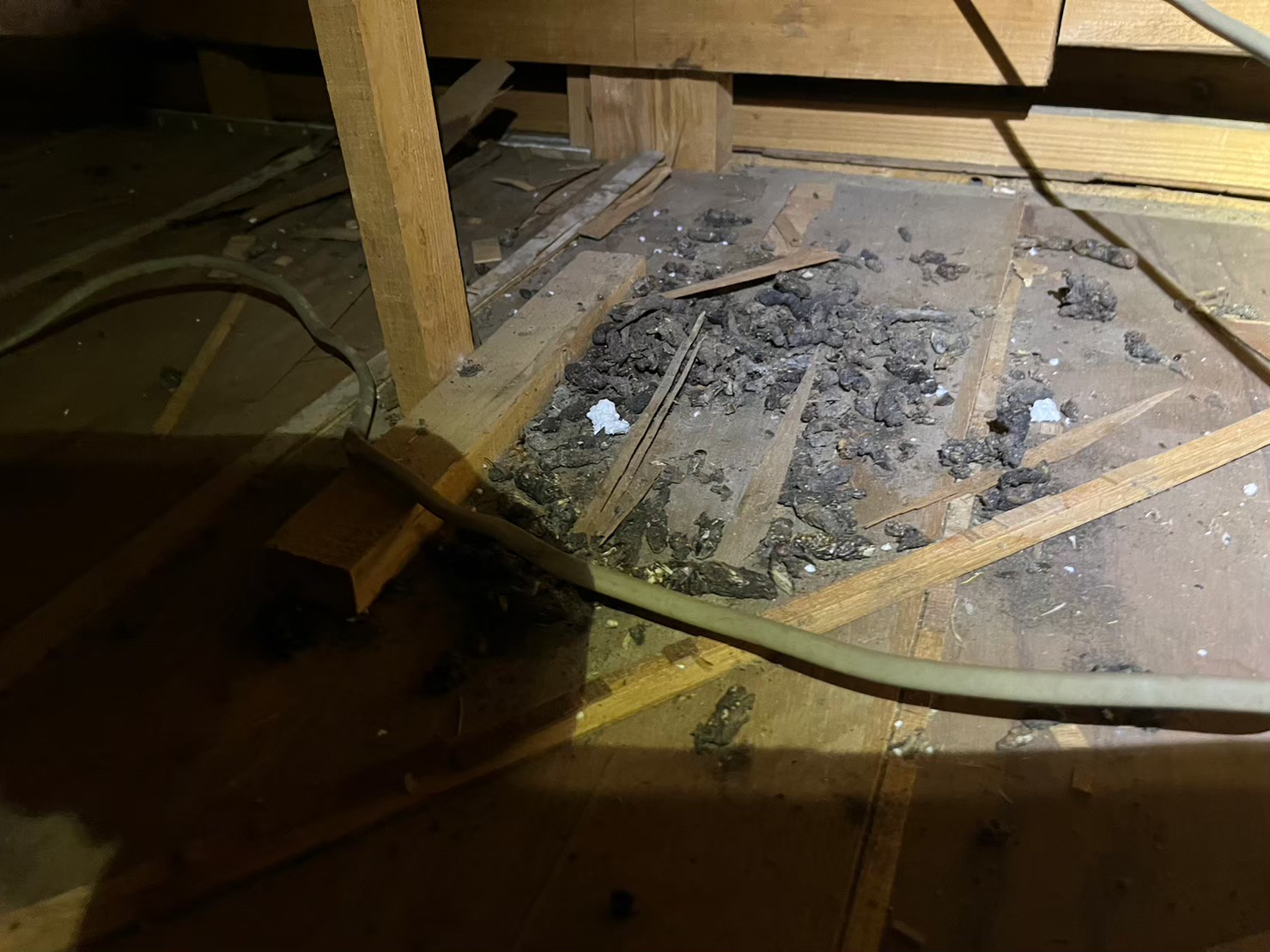 床下から1階・2階天井まで249㎡という広範囲に被害が及んでおり、糞尿による汚染や断熱材の破損も確認される深刻な状態でした。