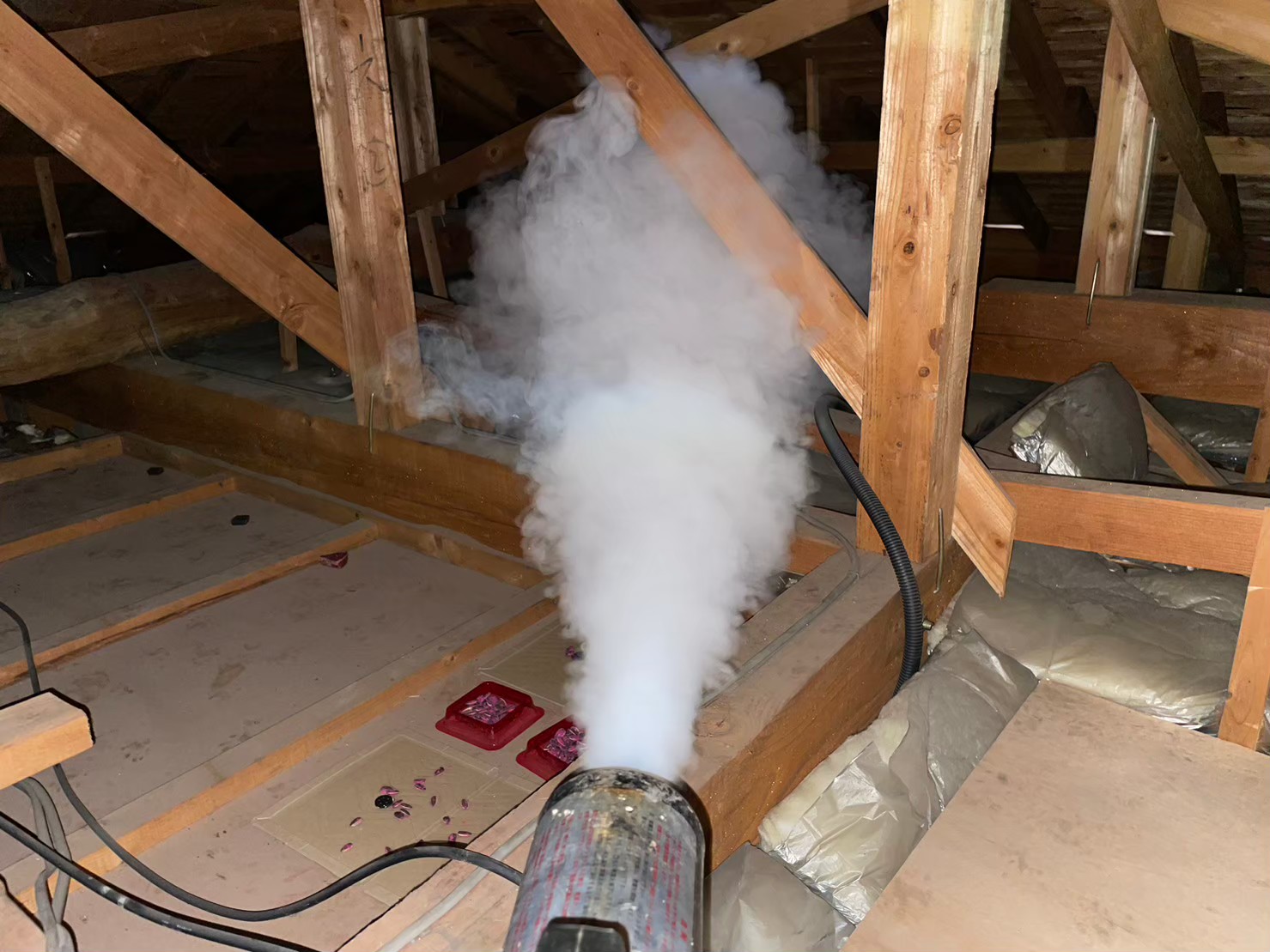 ●燻煙追い出し処理(床下・1階天井・2階天井195㎡を対象に実施)