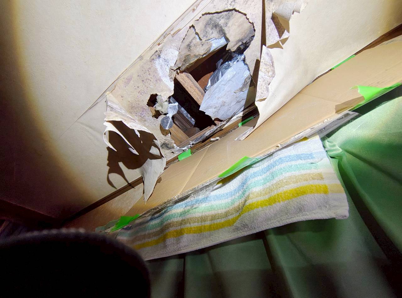 現地調査の結果、床下から1階・2階天井裏まで合計220㎡にわたりイタチの糞尿被害と複数の侵入経路が確認されました。