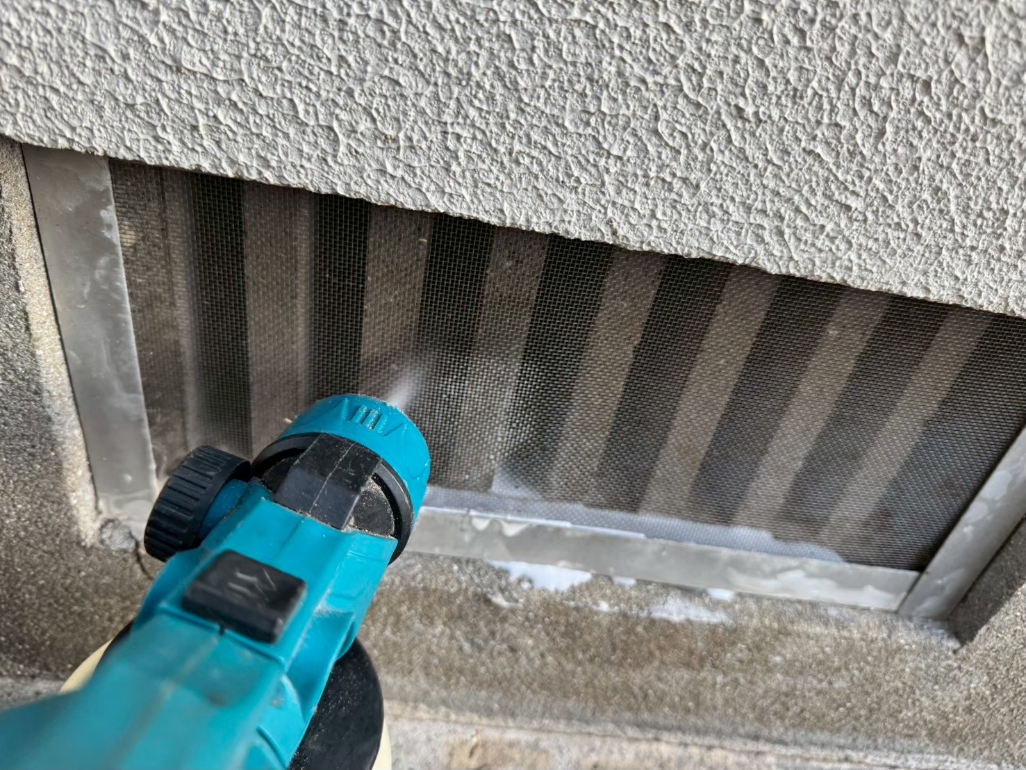 ●外壁侵入口封鎖工事(基礎周り・屋根の重なり・梁の隙間・飾り格子・軒天破損箇所・室外機ケース・配管隙間等)